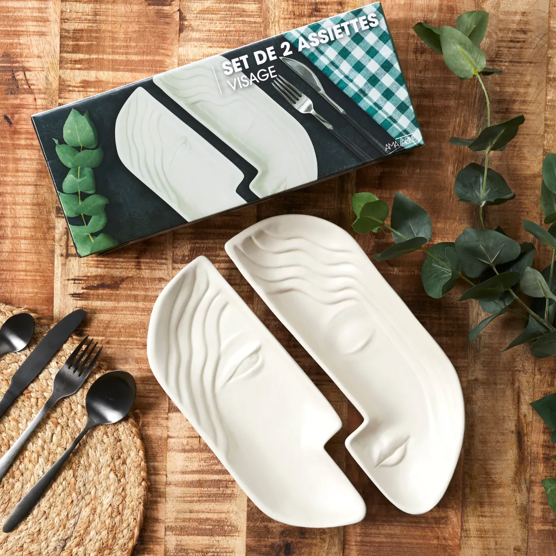 Vous en avez marre de vos assiettes rondes ? Alors, osez le changement et mangez dans ces assiettes visage au format tout sauf banal. Pour une soirée romantique ou juste pour le plaisir, chacun sa moitié ! Et vous pouvez aussi vous en servir comme plateau pour une belle présentation sur la table.