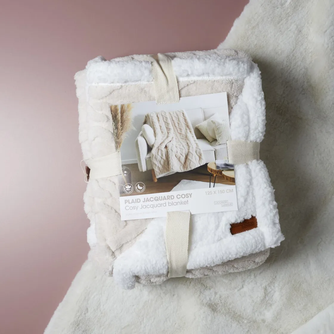 Esthétique neutre : Avec ses tons crème, le Plaid Jacquard Cosy s’intègre harmonieusement dans tout type de décor, ajoutant une touche de sophistication sans effort à votre espace de vie.