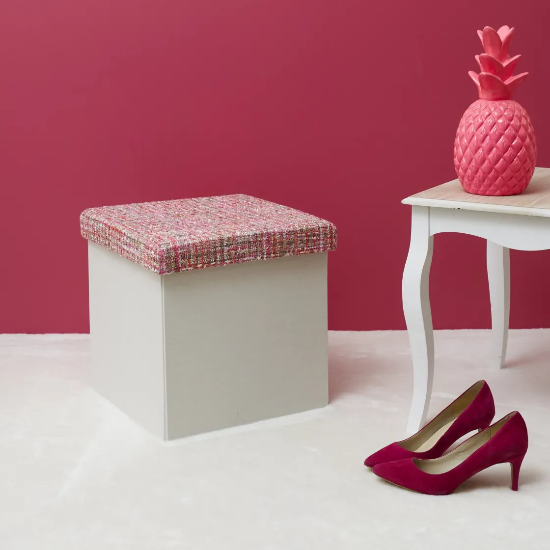 La Chaise Longue Déco-POUF PLIABLE TWEED ROSE