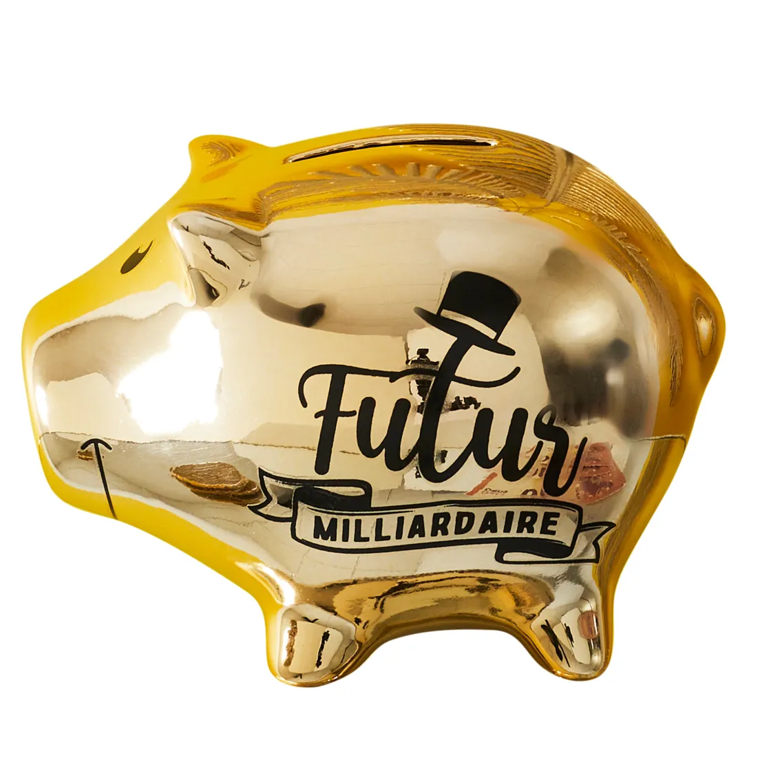 Offrez-vous une dose de luxe et de fantaisie avec la tirelire cochon milliardaire gold !