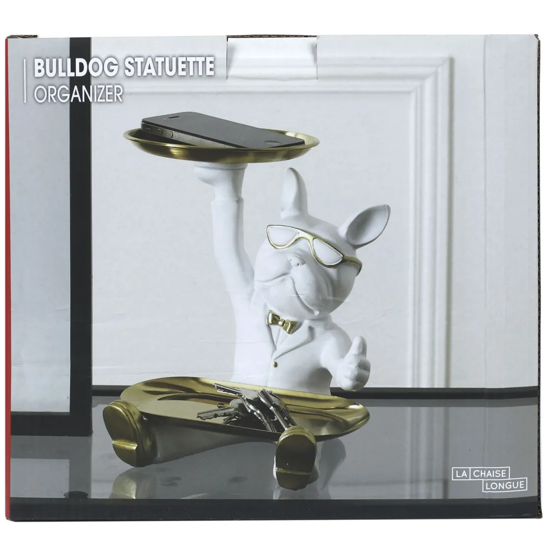 Avec sa finition blanche impeccable et ses accents dorés luxueux, le VIDE POCHES BOULEDOGUE 2 PLATEAUX BLANC s’intègre parfaitement à tout type d’intérieur,