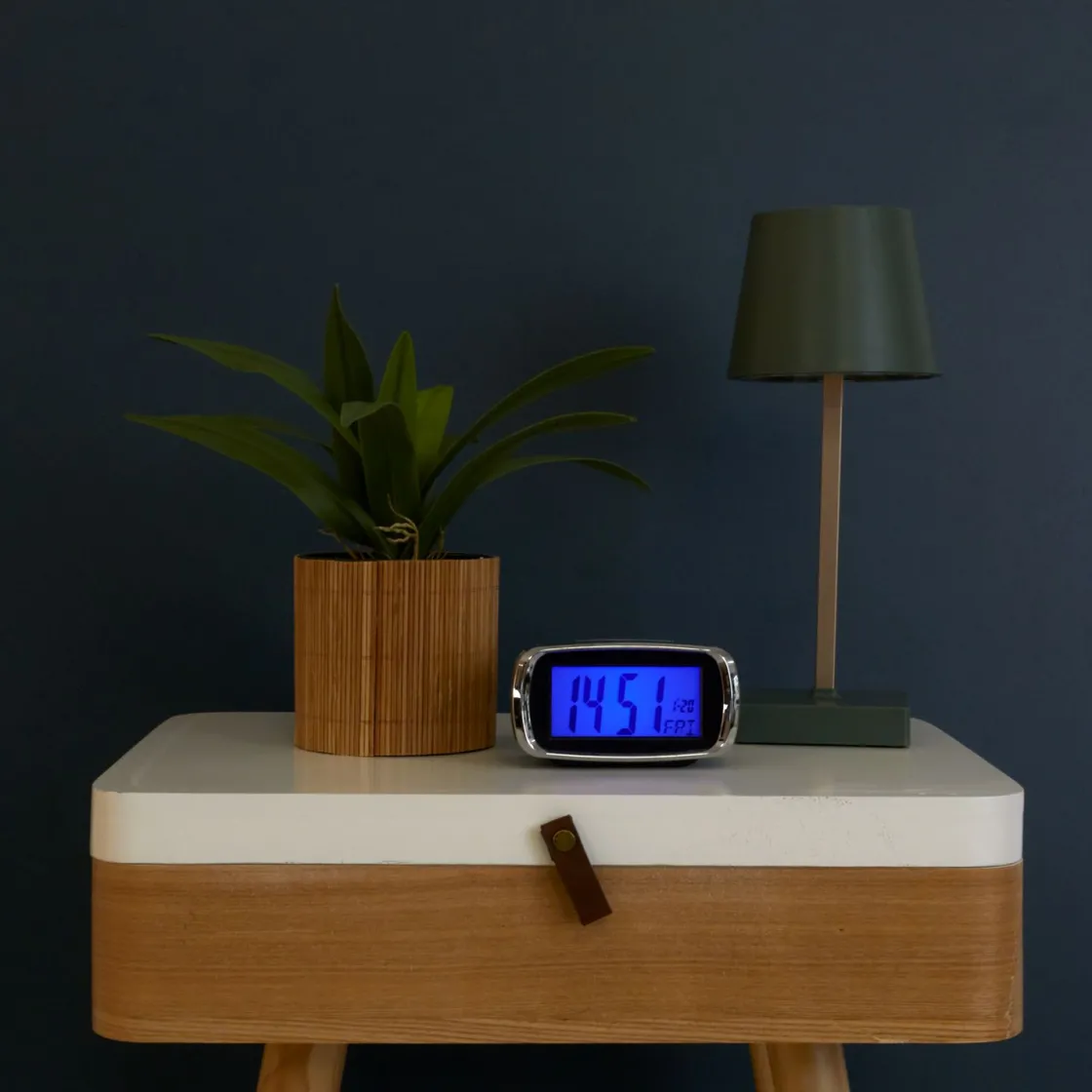 Avec son design épuré et sa finition chromée, le Réveil Digital Tiggy s’intégrera parfaitement à n’importe quelle table de chevet.
