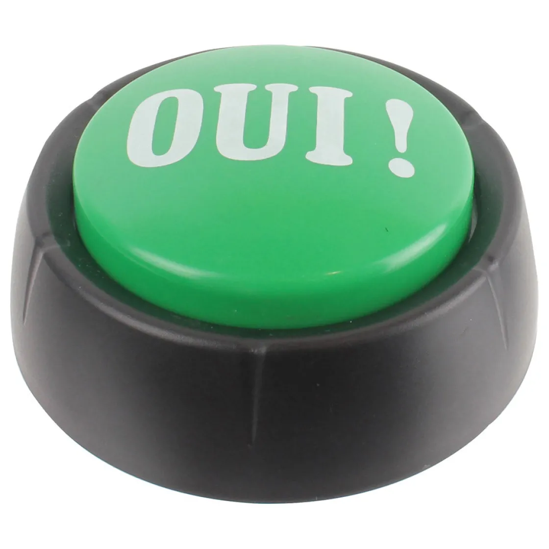 Le mot « oui » prononcé avec différentes intonations, de quoi vous surprendre à chaque fois. Et si vous êtes plutôt du genre grognon, type mademoiselle ou monsieur « non non » : on a aussi le buzzer Non qu’il vous faut !