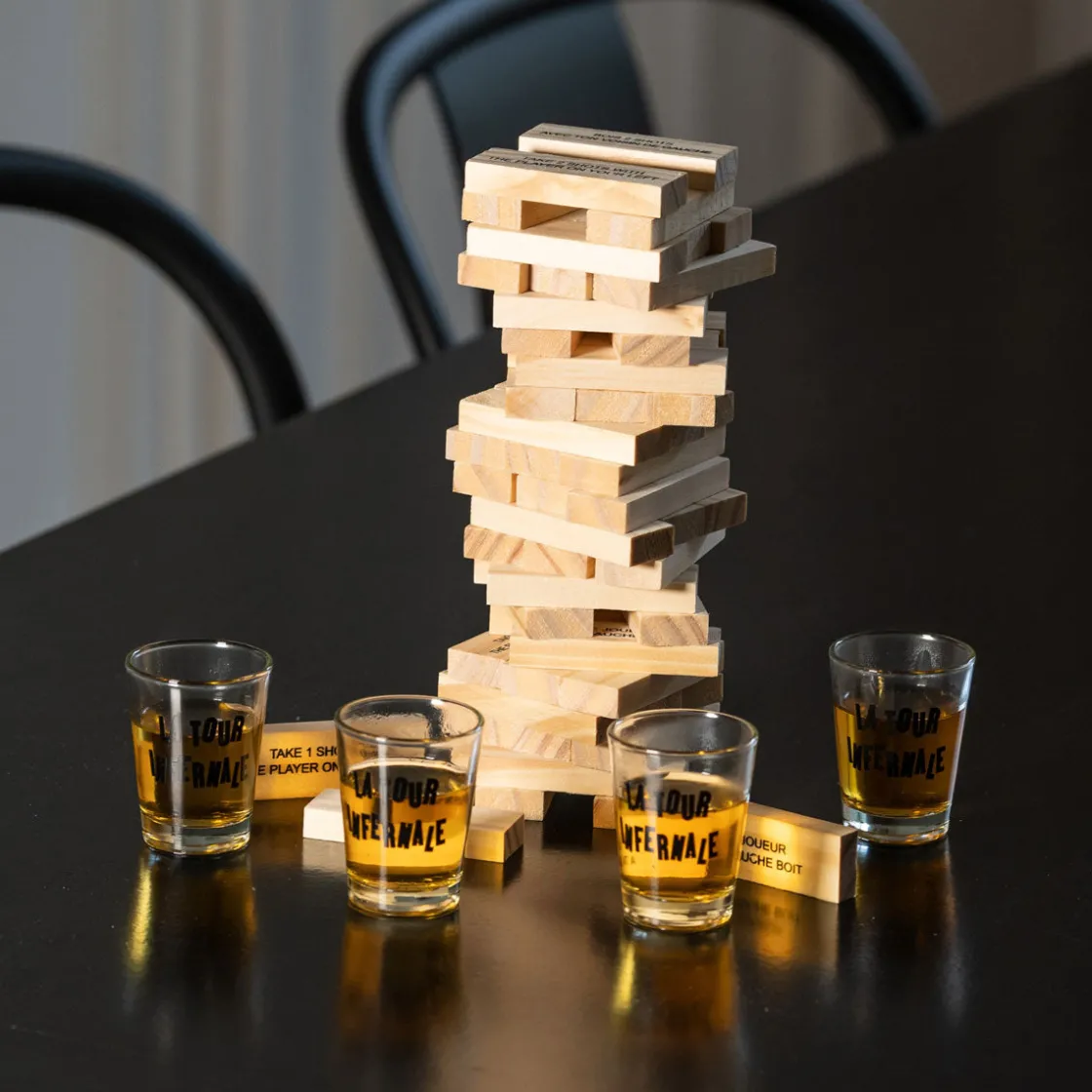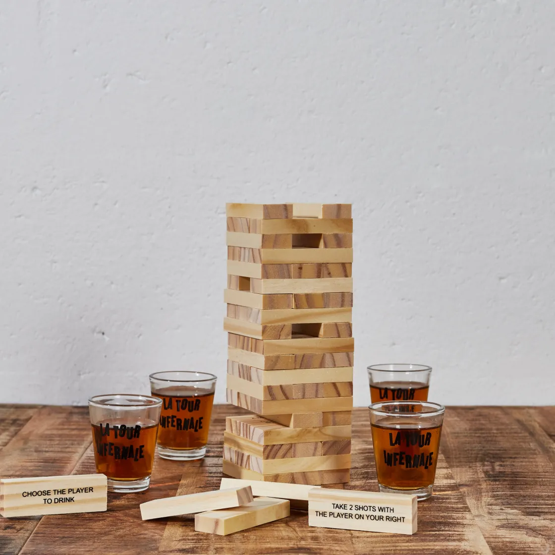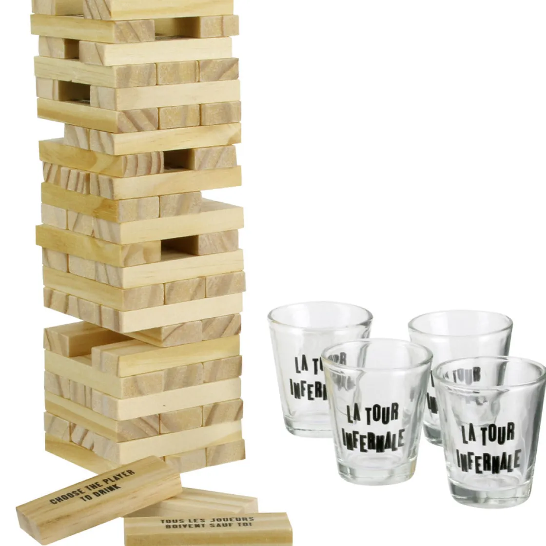 A tour de rôle retirez une brique sans faire tomber la tour. Et dans le cas contraire, réalisez le gage inscrit sur la brique.