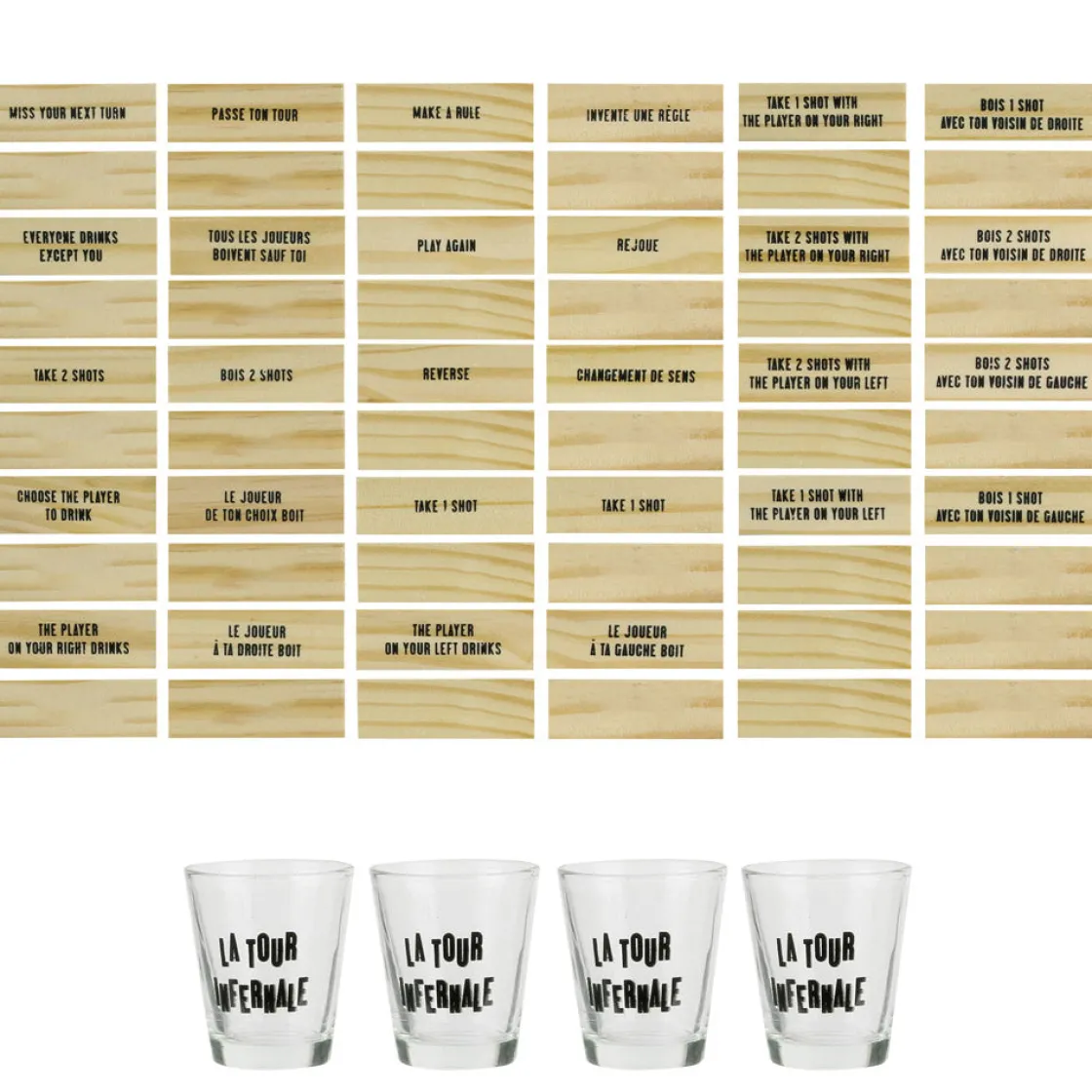 • Contient : 4 verres (en verre) et 60 briques en bois
