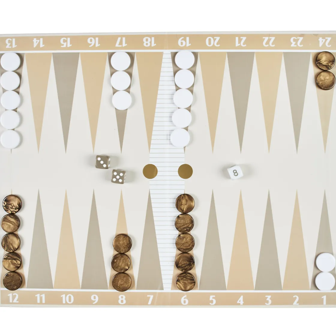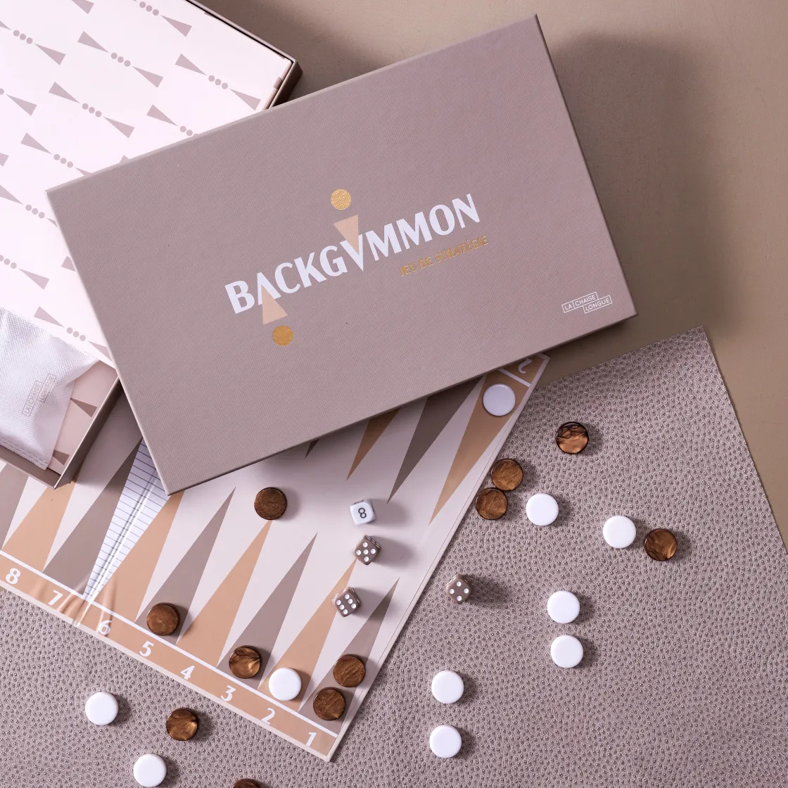 Un esprit de compétition ? Le jeu de Backgammon est le cadeau idéal ! Dans une jolie boîte à offrir, le jeu de Backgammon est doté d’un design arty très épuré, aux tons beige, marrons pastel.