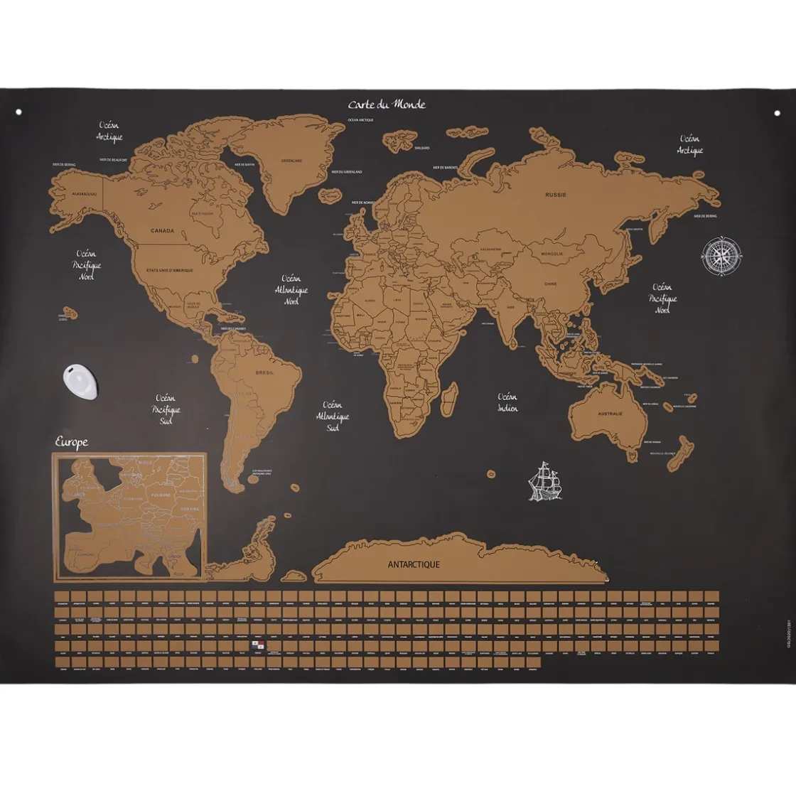Vous iriez bien faire un tour du côté de l’Australie… ou de l’Afrique… ou peut-être, de l’Amérique du Sud ! Voyagez de pays en pays avec cette carte à gratter souple avec drapeaux pour découvrir des terres inconnues. Peu à peu, le monde se pare de mille couleurs pour égayer votre mur et vous rappeler les prochains pays à visiter, ou ceux que vous avez déjà fait.