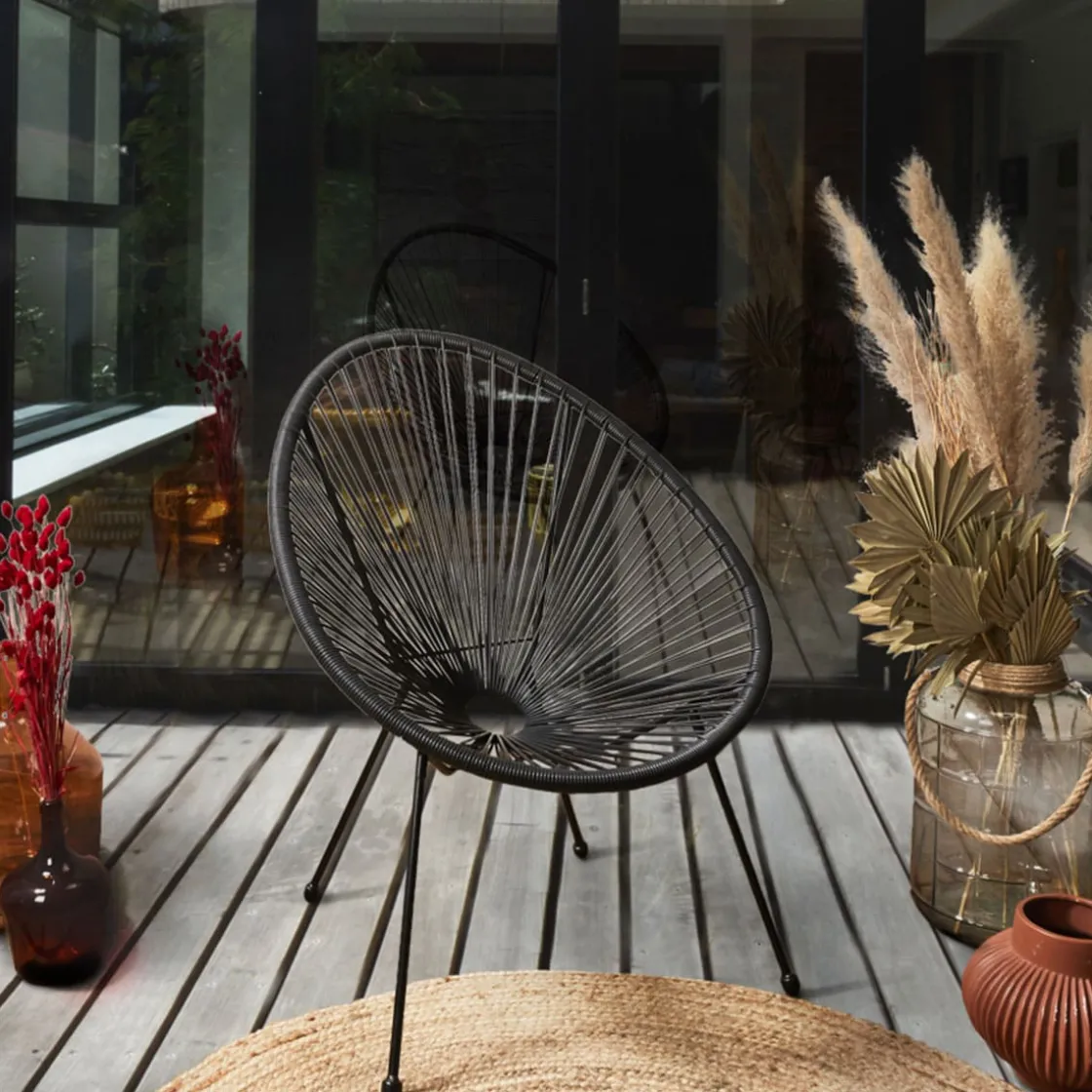 Il est temps de passer sa déco d’extérieur au niveau supérieur en craquant pour ce fauteuil Acapulco 4 pieds noir ! Pièce moderne et vintage à la fois, l’indémodable tendance mexicaine des années 50 s’impose dans nos intérieurs, pour notre plus grand bonheur ! Terrasse, jardin, balcon ou salon, vous trouverez forcément l’endroit rêvé pour le mettre en valeur. À adopter seul ou à mixer avec d’autres coloris pour plus de fantaisie, ce fauteuil Acapulco deviendra sans tarder la star incontestée de votre mobilier d’été. Robuste, design et confortable, ce modèle à 4 pieds en métal vous assure détente et relaxation sans besoin de vous préoccuper de rien… Assis ou à demi couché, quelle que soit la position que vous adoptiez, vous pourrez toujours compter sur sa stabilité. Il ne vous reste plus qu’à choisir un bon livre, une boisson fraîche et à vous installer pour profiter de ces précieux moments de farniente !