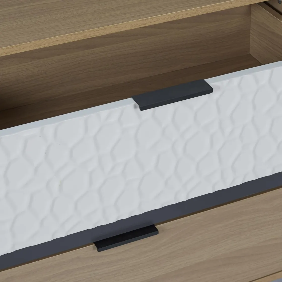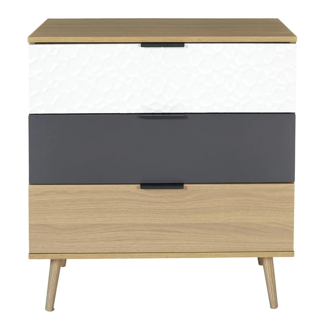 Sven c’est une commode qui ne se contente pas de garder vos affaires et vos secrets bien au chaud. Elle ajoute aussi une touche design à votre intérieur avec ces trois tiroirs texturés. Vous l’avez compris, elle deviendra la pièce maitresse de votre intérieur, à en faire pâlir de jalousie vos amis ou vos voisins.
