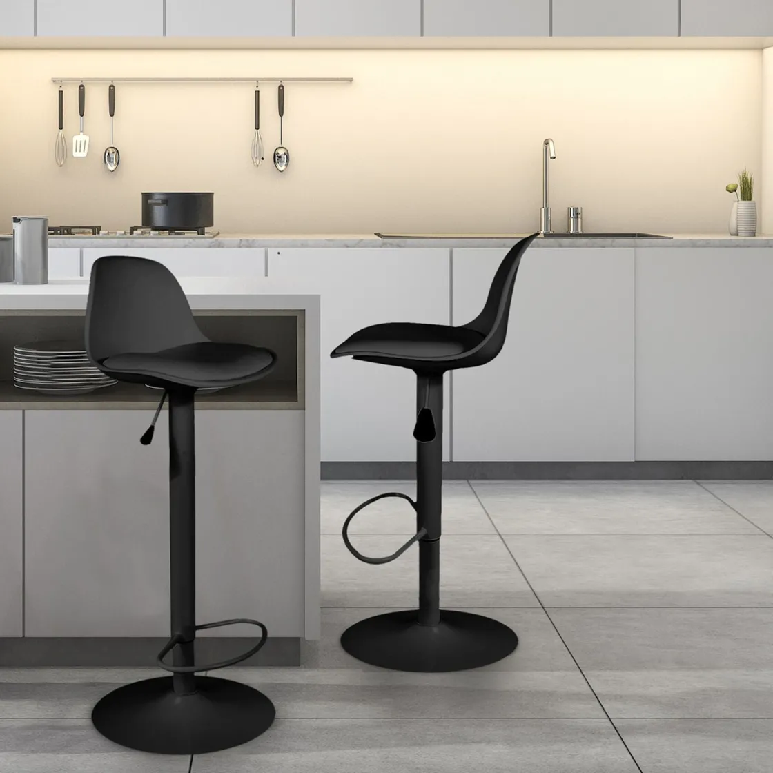 Ce tabouret Isak noir est tout ce dont vous avez besoin pour ajouter une touche de style à votre espace de bar. Avec son design à la fois minimaliste et élégant, il est impossible de ne pas tomber sous le charme par son allure à la fois chic et branchée. Actionnez le levier pour régler la hauteur du tabouret, et être confortablement installé, même pour les plus petits.