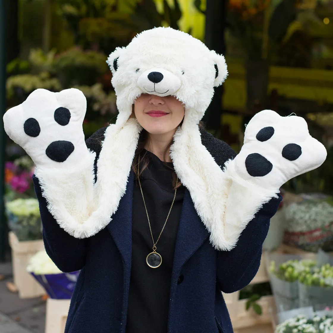 Bonnet, écharpe ou gants ? Pourquoi choisir ? Cette écharpe trois en un vous gardera au chaud cet hiver.Vous voilà équipé pour affronter un froid polaire ! Difficile de rester de glace face à son style irresistible… Alors cet hiver adoptez le style ours.