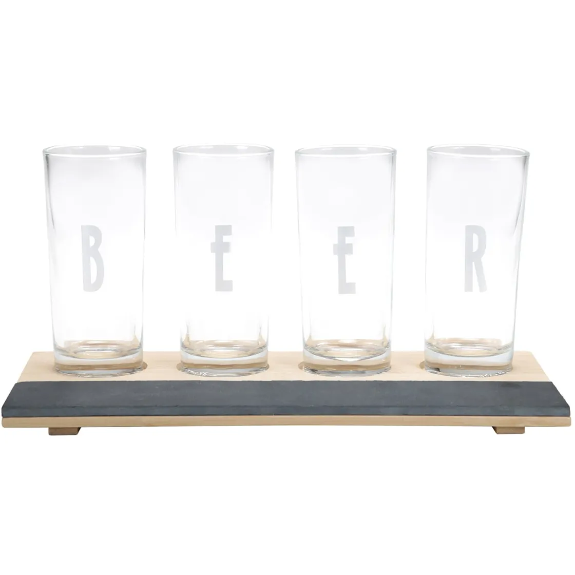- Contient : 4 verres de dégustation, 1 planche de présentation en bambou avec 1 ardoise et 2 craies pour noter les noms des bières