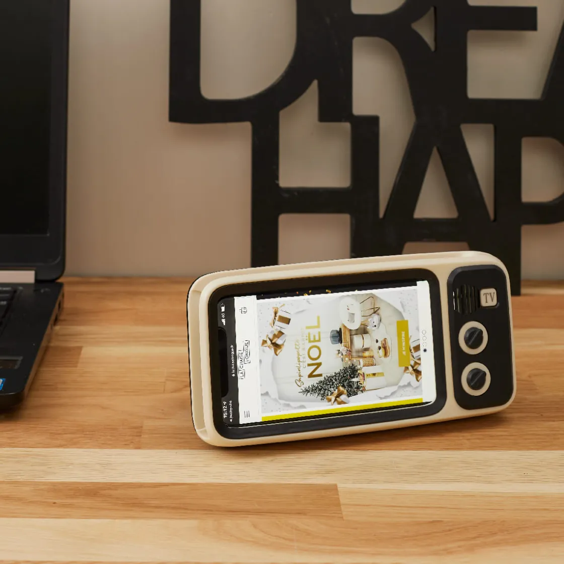 Vous qui aimez regarder des vidéos sur votre téléphone, vous savez à quel point votre bras peut en souffrir. Avant que les crampes n’arrivent, optez pour le confort et le style de la mini télé portable BT. Un support smartphone et enceinte au look rétro facile à transporter, idéal pour des soirées télé où que vous soyez !