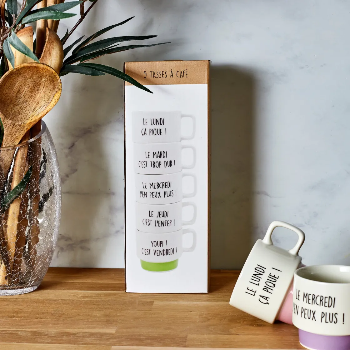 - Coffret de 5 tasses à café semaine