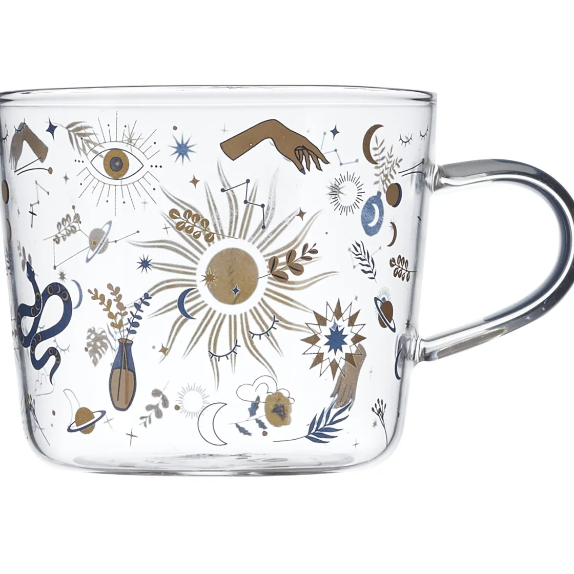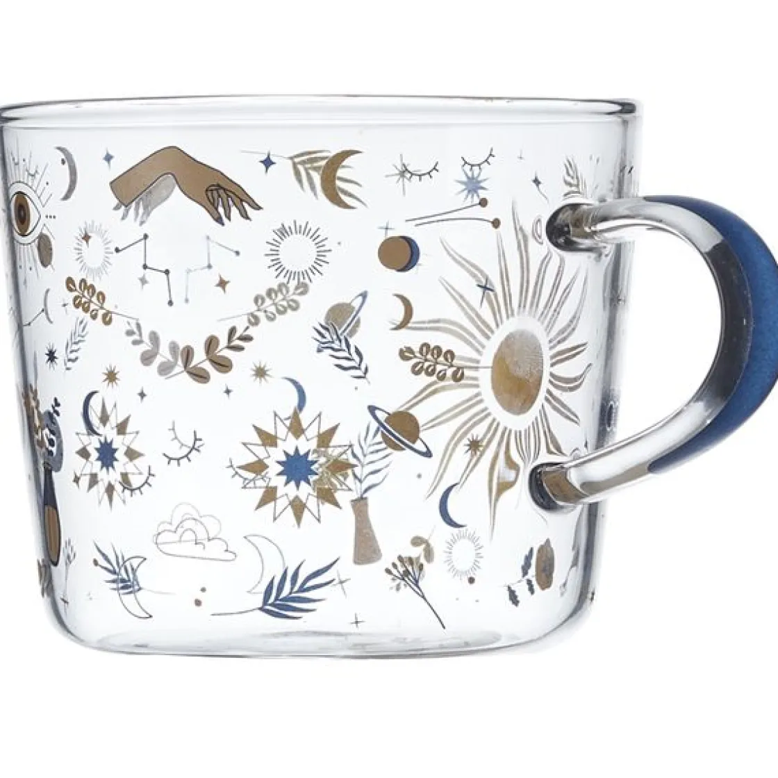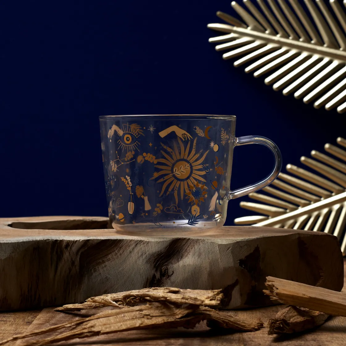 Laissez vous séduire par cette tasse en verre et son look bohème et astral. Elle sera idéale pour bien commencer la journée avec un thé ou un café, tout en lisant votre livre préféré… Emmenez là au bureau avec vous, elle fera des jalouses!
