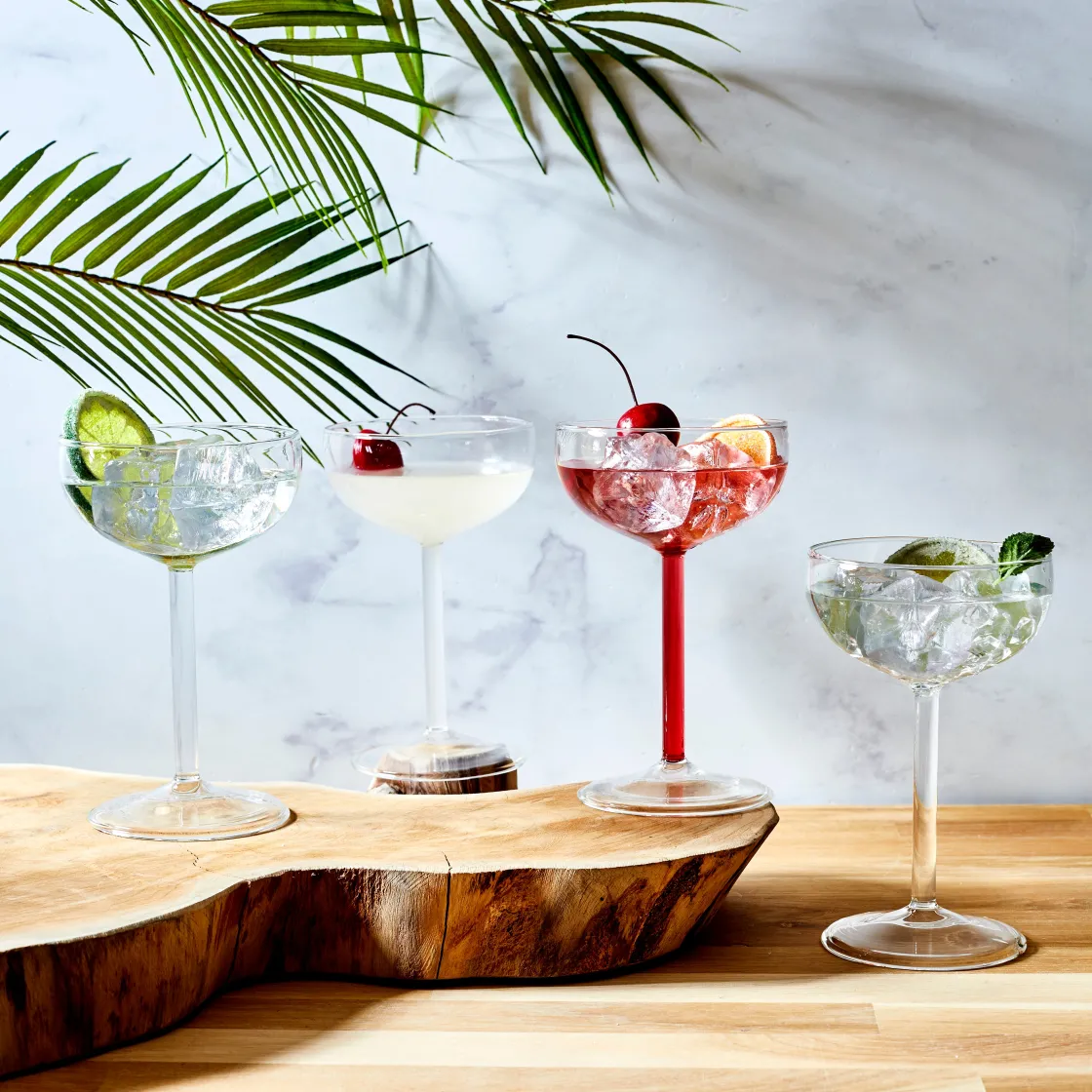 Encore des coupes à cocktail, nous direz-vous ! Oui, mais celles-ci se remplissent jusqu’au pied. Lequel est creux, comme vous le remarquerez. Pour nous, ça coule de source. Et pour vous ?