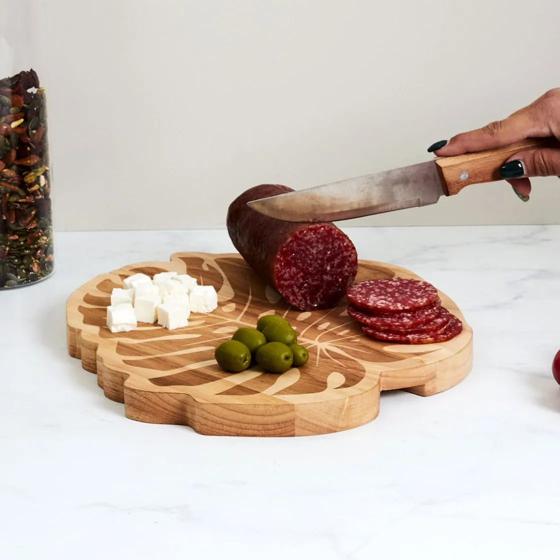Star incontestée en matière de déco, la feuille de monstera deliciosa n’a pas fini de nous étonner ! Cette fois-ci, elle s’invite en cuisine sous la forme d’une planche de présentation au design totalement canon. Pour surprendre vos amis au moment de l’apéro et pour que votre présentation soit une réussite, disposez amuse-bouche et autres gourmandises à croquer sur votre planche monstera en bois. Effet waouh assuré ! De plus, le couteau en inox est inclus pour vous faciliter la tâche. Un accessoire de cuisine génial qui séduira les amateurs d’art de la table et de déco tropicale !