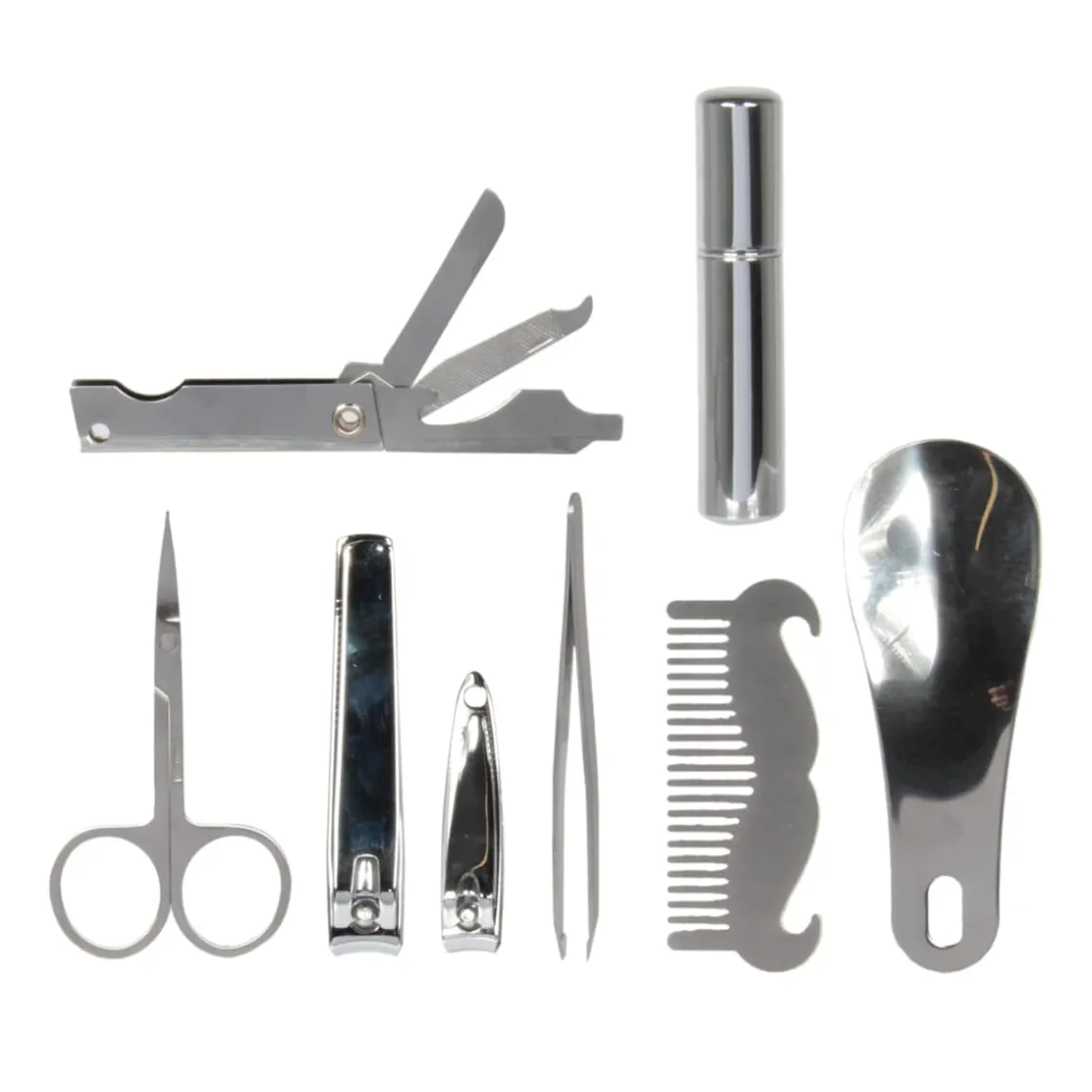 - Comprend 2 coupe-ongles, ciseaux, peigne, pince à épiler, couteau multifonction, chausse-pied et vaporisateur