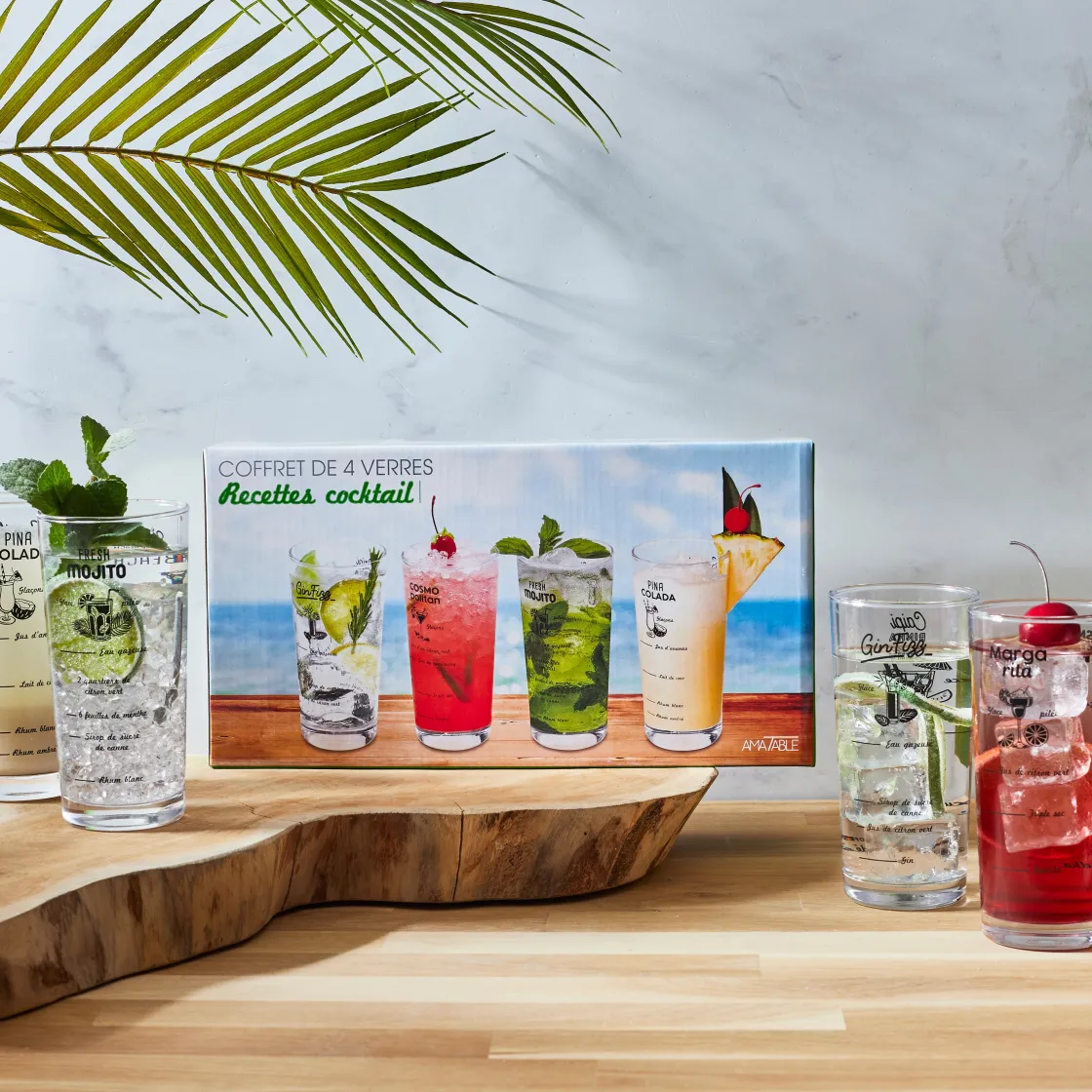 Grâce à ce coffret de 4 verres et leurs 8 recettes de cocktails populaires, pas de risque qu’un ingrédient ne passe à la trappe. À remplir, rafraîchir et givrer à volonté pour une présentation encore plus stylée. Un cadeau utile et bien pensé pour tous les amateurs de mixologie et de soirées improvisées !