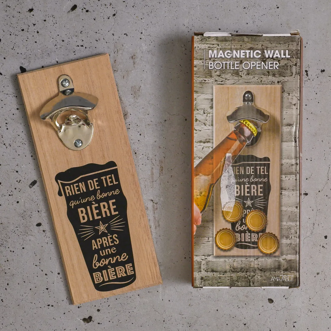 Chez vous, la bière, c’est sacré ! Seul ou avec des invités, vous en prenez une, puis deux… Pas de temps à perdre, il faut enchaîner ! Vous n’êtes même plus obligé de vous déplacer jusqu’à la poubelle, votre décapsuleur aimanté mural se charge de collectionner vos trophées. Une idée de cadeau Noël originale pour les amateurs de bière à l’humour bien trempé !
