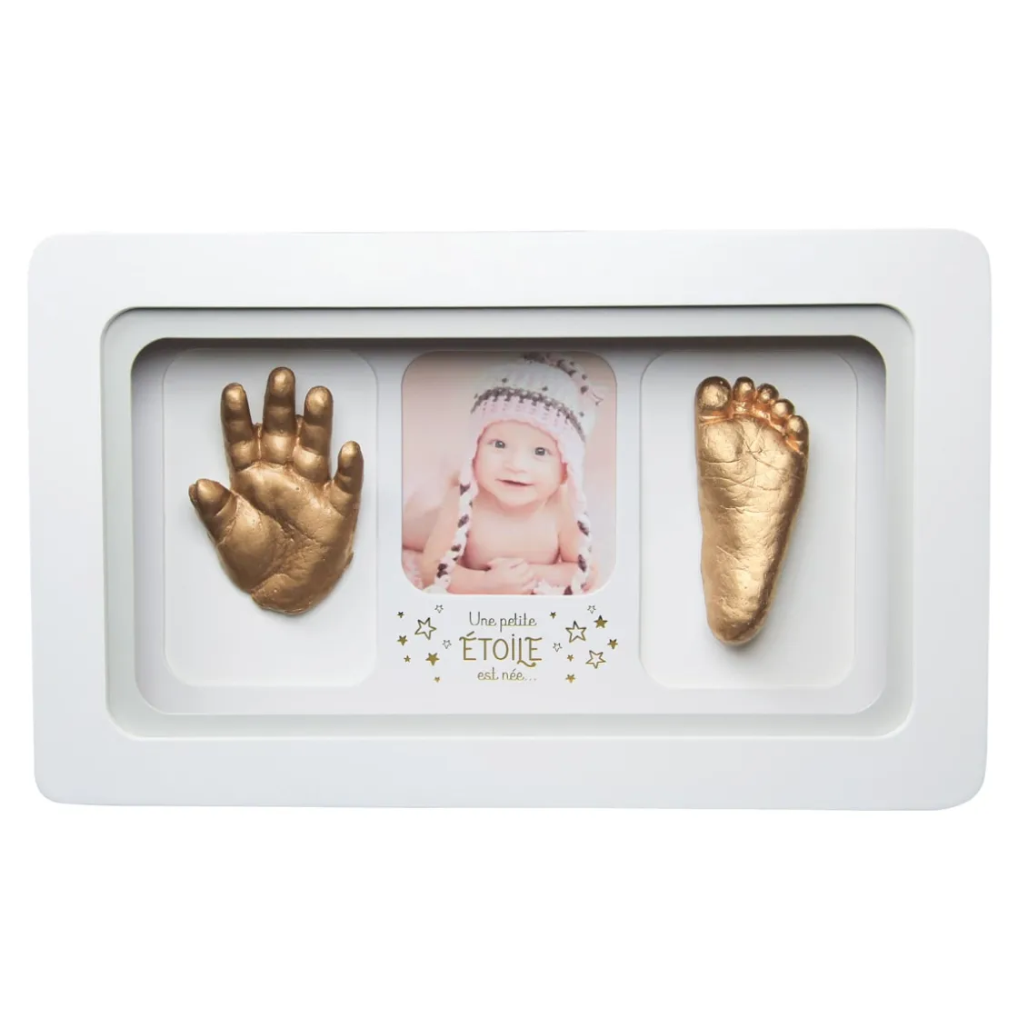Vous avez l’habitude de faire des pieds et des mains pour imposer vos idées ? Celle-ci est géniale. Spécialement conçu pour marquer de votre empreinte les premières heures de vie de votre nouveau-né, ce coffret avec cadre photo saura épater la galerie.