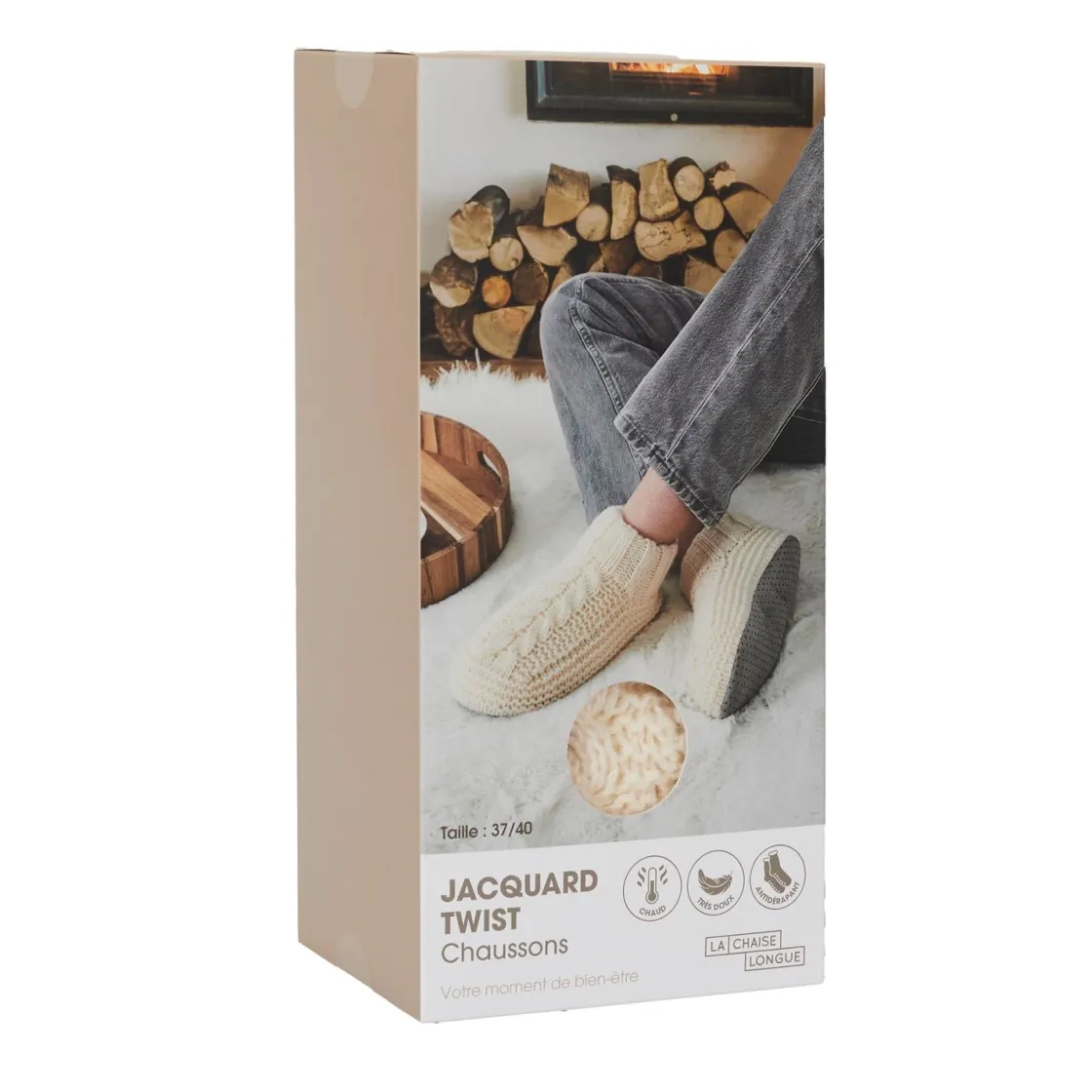 Les Chaussons Chaussettes Jacquard Cosy Time, c’est le petit plaisir à savourer les pieds bien au chaud. Que vous soyez d’humeur à cocooner sous un plaid ou à faire trois pas jusqu’à la cuisine pour un petit snack, ces chaussons tout doux seront vos meilleurs alliés. Leur look en mode jacquard ajoute un petit côté chic même en mode détente.