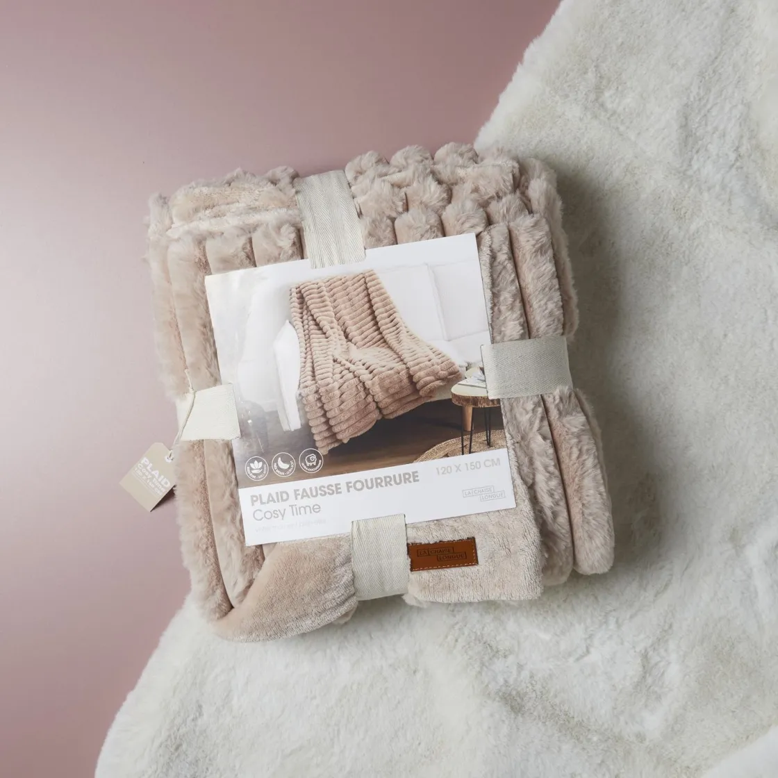 Plongez dans un cocon de douceur et de chaleur avec le plaid fausse fourrure Cosy Time.