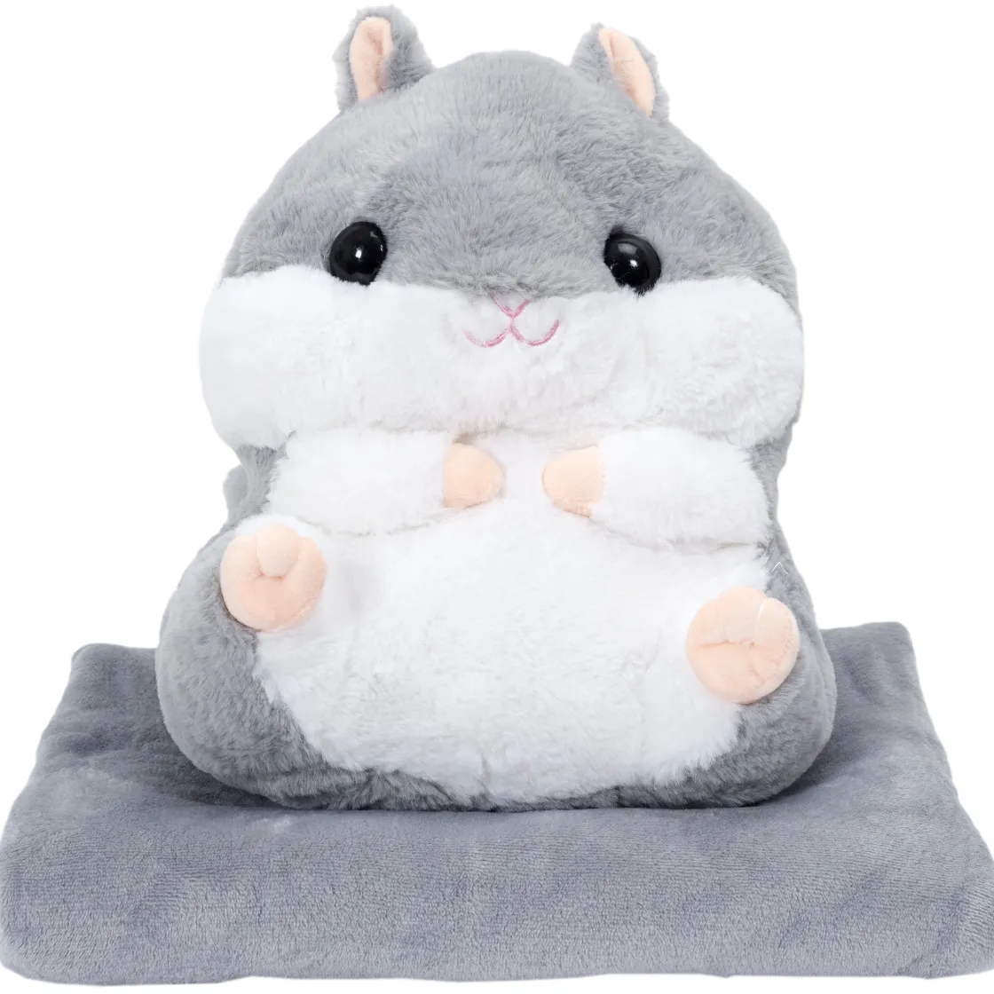Sortez le plaid de la pochette au dos de votre hamster, installez vous confortablement dans votre canapé, et placez vos mains dans le manchon pour les tenir au chaud.