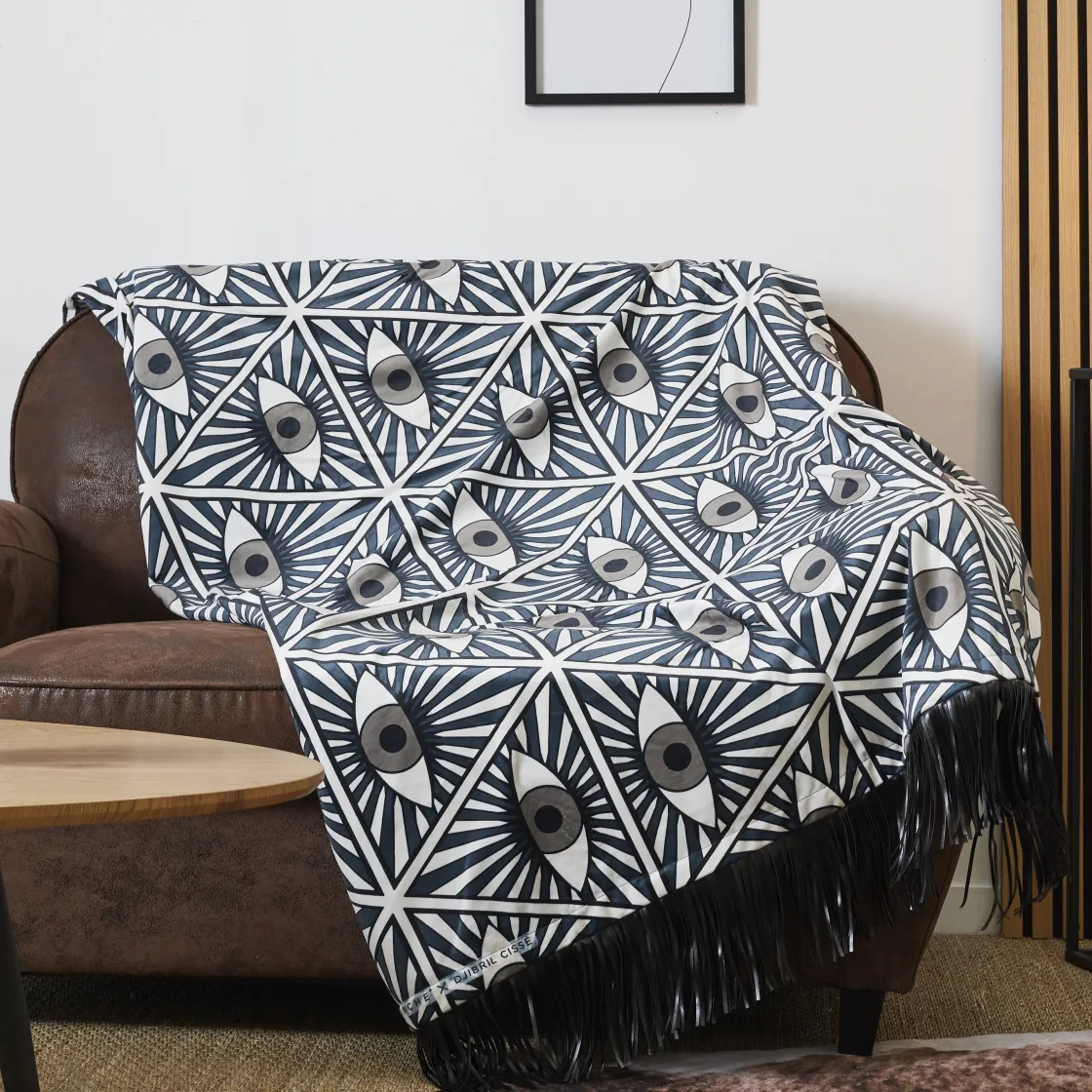 Ce plaid CAMANA en velours au design graphique, vous apporte douceur et élégance et de la personnalité. Qu’il soit posé sur un coin de votre canapé, sur votre lit ou encore sur vos genoux, ce plaid doux et somptueux vous fera voyager grâce à ses lignes graphiques et sauvages inspirées des terres africaines. Une idée de cadeau qui saura, vous apportez confort, chaleur et habiller votre intérieur.