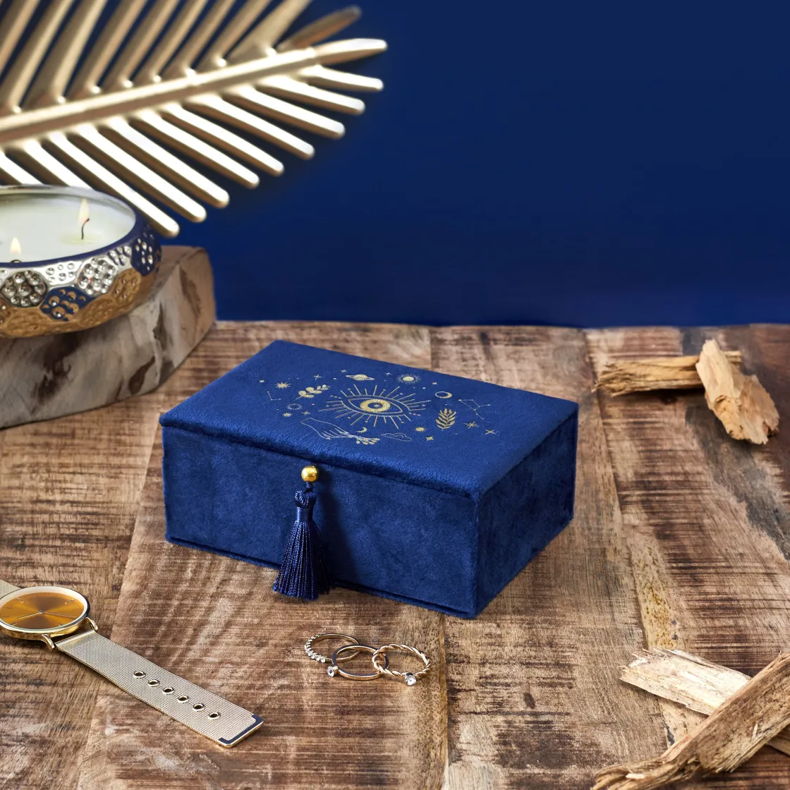 À toutes les amatrices de bling bling, cette boîte à bijoux n’est pas comme les autres, non non non. Elle a été conçue pour les amoureuses de la mode et de la fantaisie. Avec son toucher en velours et son design astral, elle va faire de l’ombre à tous les autres