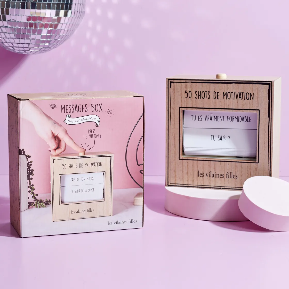 Tu as un potentiel de ouf, tout simplement parfaite aujourd’hui, tu es une nana fabuleuse… Même si tout le monde le pense, personne ne le dira tout haut. Jalousie, peut-être ? En revanche, la boîte à messages des Vilaines Filles n’y va pas par 4 chemins pour vous dire ce qu’elle pense de vous. Un vrai shoot de motivation grâce à ces 50 petites phrases qui embelliront votre journée. Celle-là, heureusement que vous l’avez !