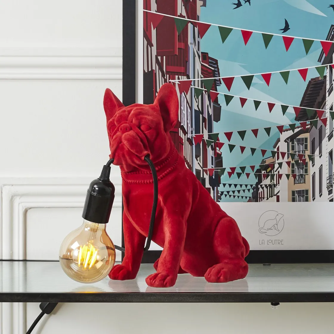 la LAMPE BOULEDOGUE RED VELVET combine fonctionnalité et originalité sans effort.