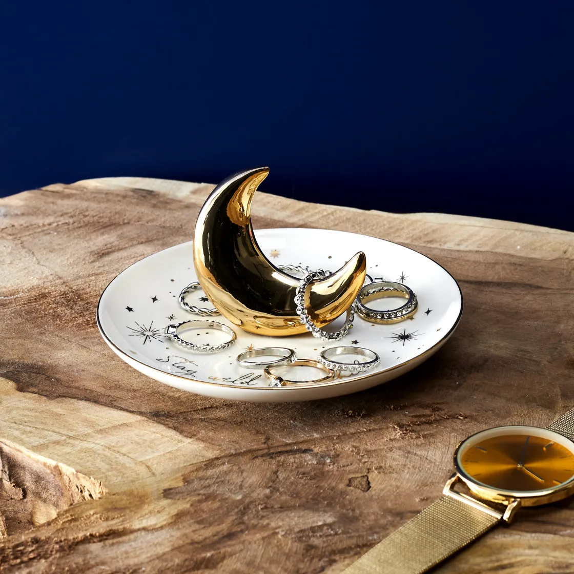Ce porte-bagues You’re Magic est doté d’une lune dorée sur une assiette où vous ne perderez plus vos bagues !