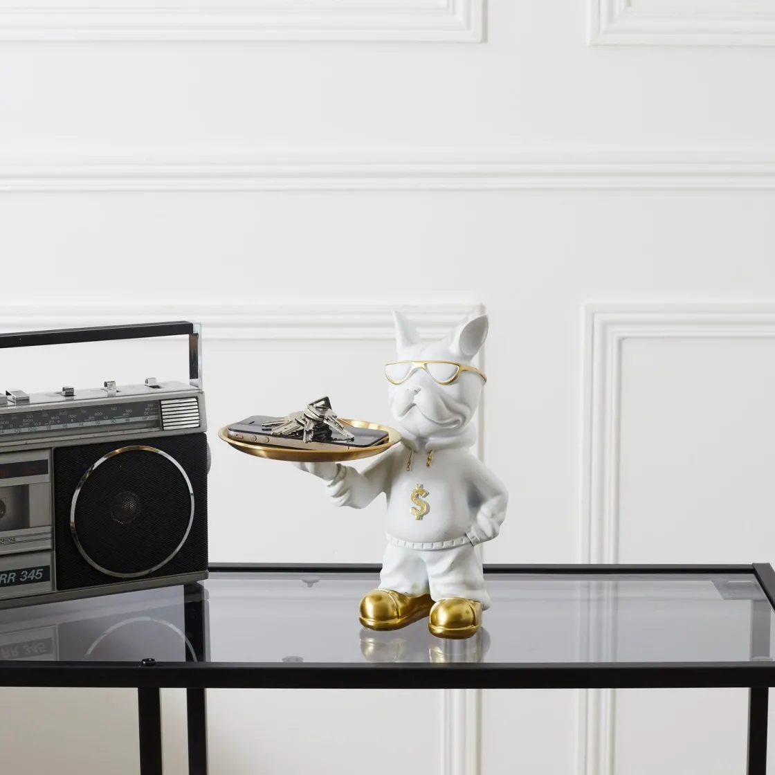 Découvrez le Vide Poches Bouledogue Rappeur Blanc, une pièce unique qui incarne parfaitement un mélange de design audacieux et de fonctionnalité.