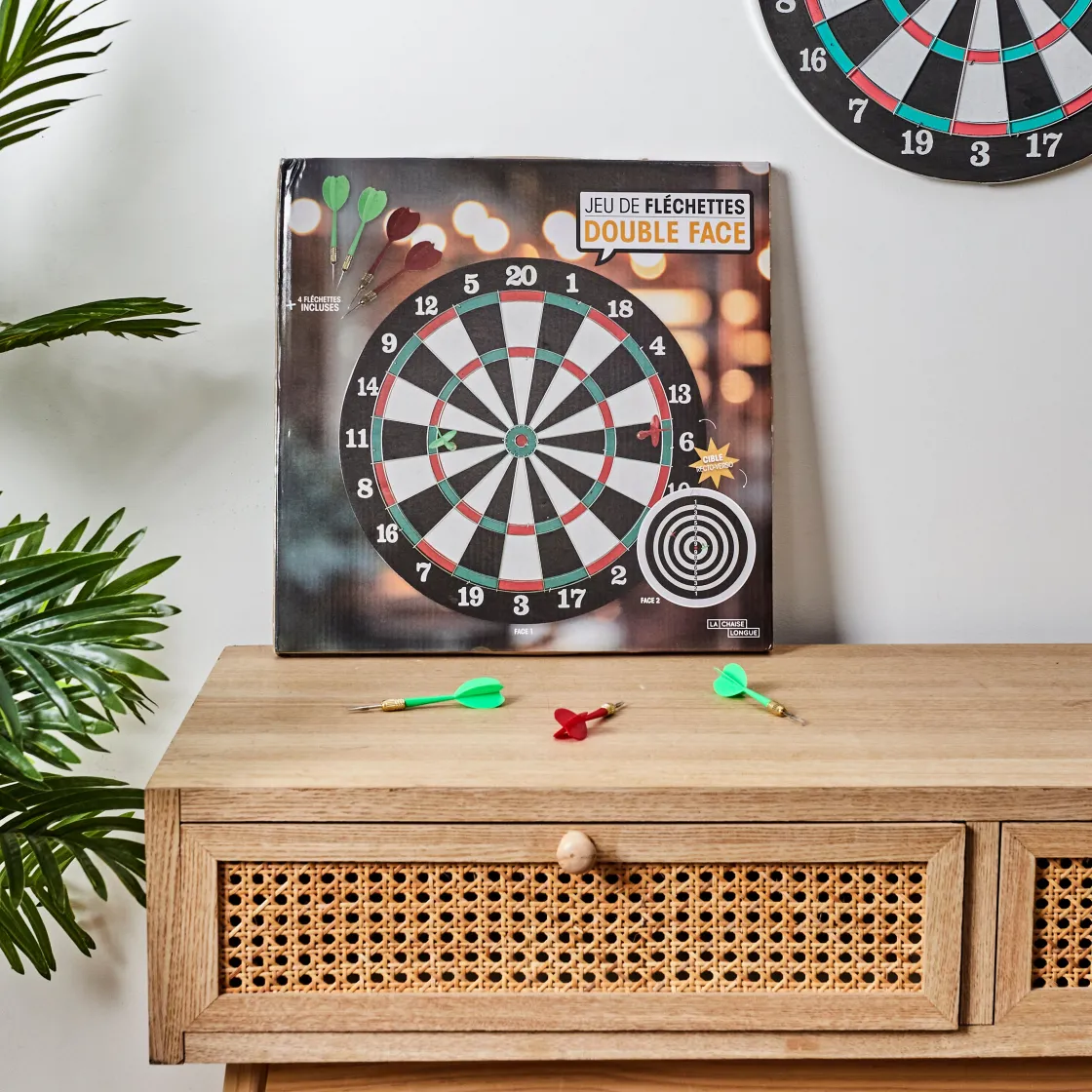 Notre jeu de fléchettes à double face est là pour vous offrir une expérience à deux visages ! D’un côté, vous trouverez une cible classique, parfaite pour les amateurs de fléchettes traditionnelles.
