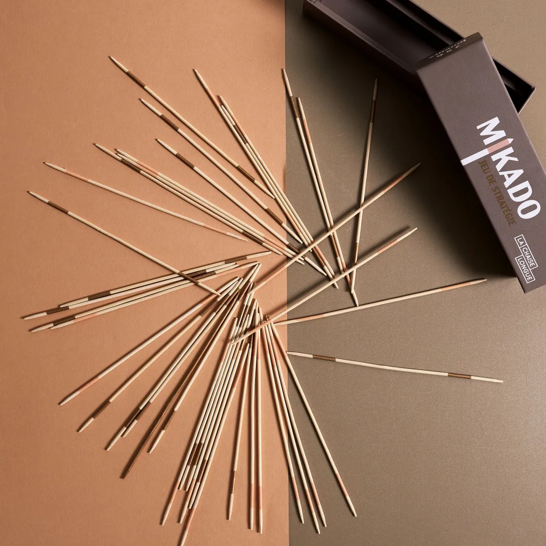 Un petit rappel des règles ? Le jeu de Mikado, c’est comme un petit casse-tête qui demande de la dextérité, de la patience et de l’adresse. Le but est de retirer des bâtonnets en bois sans faire bouger les autres. Facile !