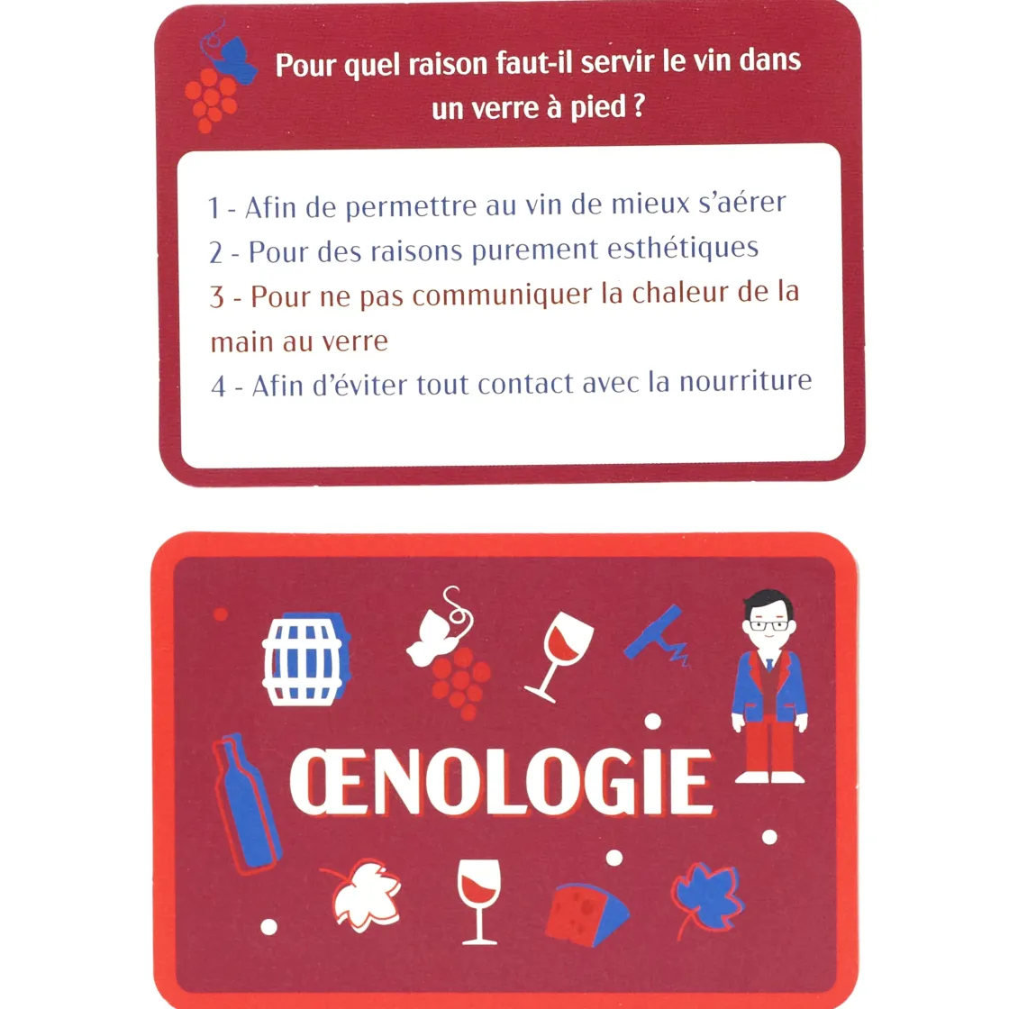Ce jeu est une excellente façon d’exposer vos connaissances d’œnologie à vos amis, ou de les approfondir… Que vous soyez un novice ou un expert en vin, expérience amusante et enrichissante garantie !