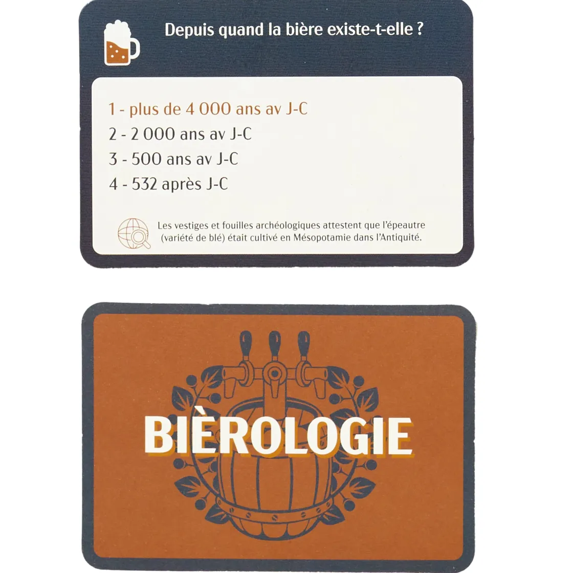 Le jeu de quizz bière peut être joué en équipe ou individuellement. Les joueurs sont invités à répondre à des questions sur la bière, comme son histoire, sa fabrication, ses styles, ses ingrédients, ses brasseries, etc.