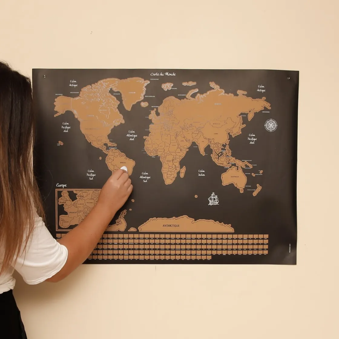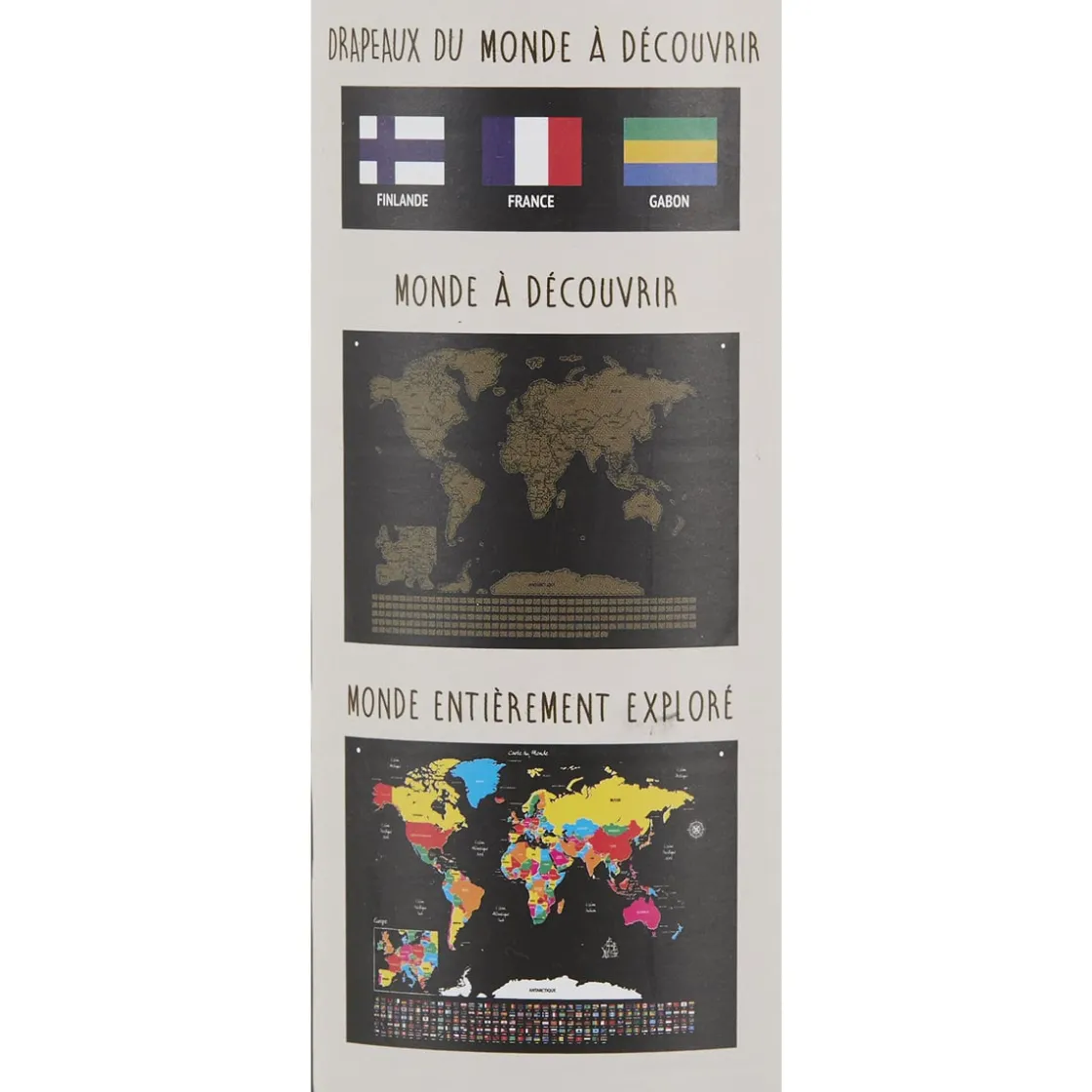 Vous iriez bien faire un tour du côté de l’Australie… ou de l’Afrique… ou peut-être, de l’Amérique du Sud ! Voyagez de pays en pays avec cette carte à gratter souple avec drapeaux pour découvrir des terres inconnues. Peu à peu, le monde se pare de mille couleurs pour égayer votre mur et vous rappeler les prochains pays à visiter, ou ceux que vous avez déjà fait.