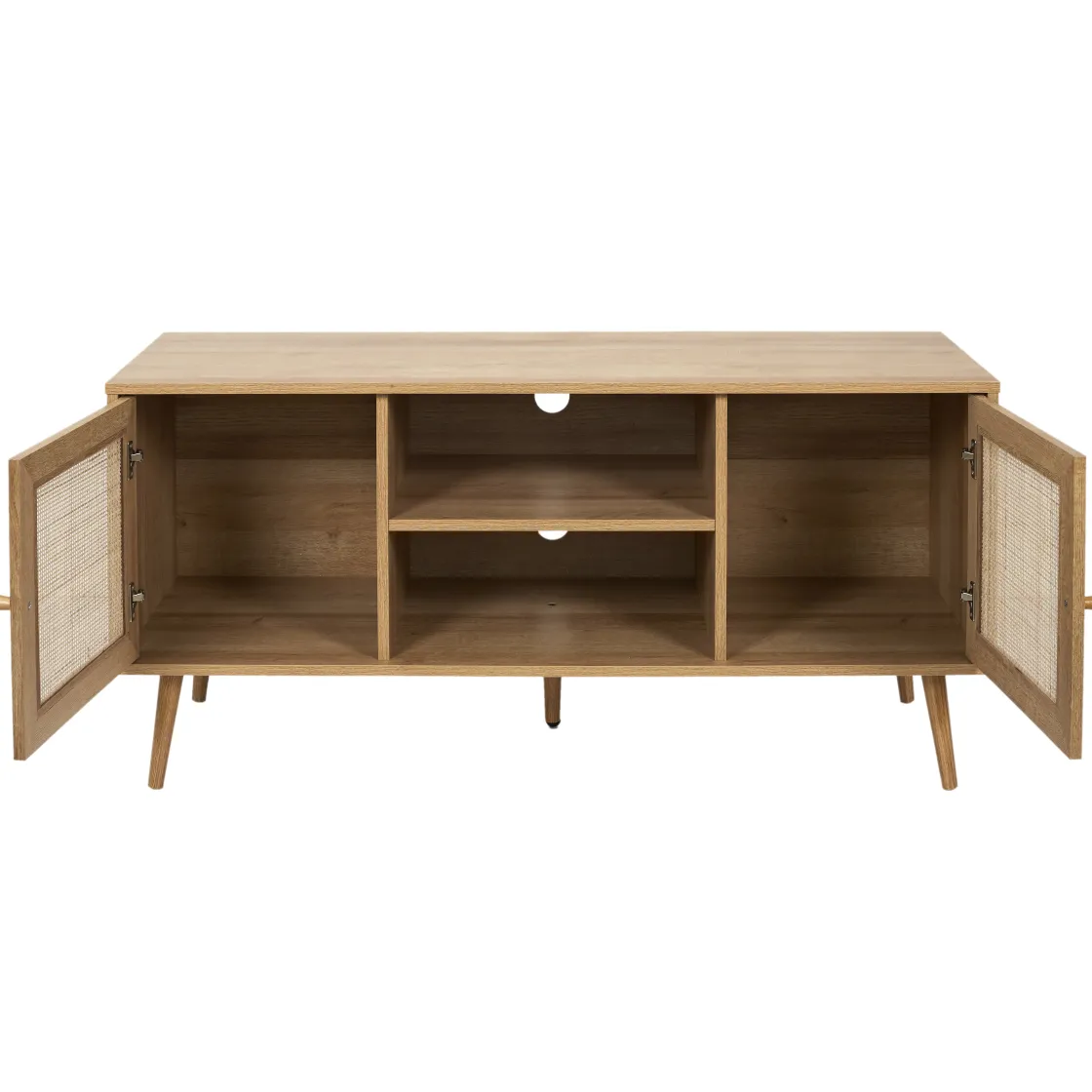 À la fois design et pratique, laissez vous séduire par le meuble TV Bali. Avec ses portes en cannage, ce petit bijou en bois aux touches bohème et nature sera parfait pour sublimer votre déco. Comme vous pouvez le voir, ce meuble à tout pour lui ! Il est spacieux, possède des placard et étagères, il fera forcément sensation dans votre salon. Si vous en avez marre des consoles et accessoires de jeux qui trainent partout, avec ce meuble et ses placards, il seront toujours bien rangés.