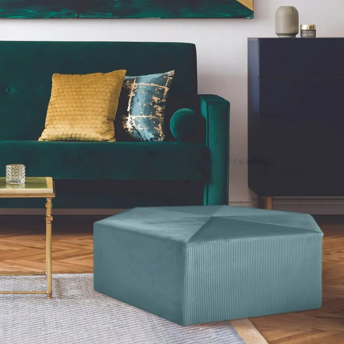 Que vous soyez plutôt soirée détente, apéro entre amis, ou soirée karaoké, ce grand pouf en velours côtelé sera votre allié. Son assise large et moelleuse accueillera avec joie le postérieur de vos invités. Et sa couleur, parlons-en! Ce bleu canard tendance sera parfait pour ajouter une touche pep’s et chic à votre salon. Avec sa forme hexagonale, il deviendra la pièce maitresse de son intérieur!