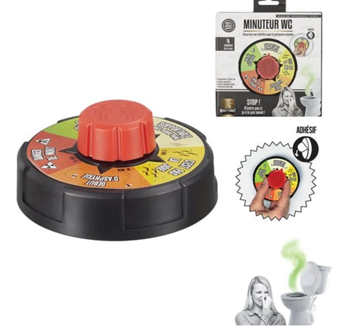 Avez-vous déjà vécu ce moment horrible où vous êtes totalement asphyxié en rentrant dans les toilettes après votre copain ou votre collègue ? Pour ne plus jamais vivre cet atroce moment, nous avons la solution pour vous! Le minuteur de WC! Avec cette super invention, chaque personne peut indiquer le temps à patienter avant de rentrer à nouveau dans les toilettes, et de pouvoir y respirer un air frais et pure. Quand le timer est sur la case verte, plus aucun danger pour vous! Alors qu’attendez vous pour offrir à votre copain, à votre collègue, ou à votre frère ce cadeau parfait et super fun ?