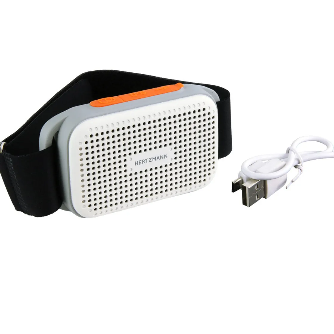 Voici l’enceinte bracelet spéciale joggeurs !À fixer autour de votre bras, pour courir en musique.Plus sûre que des écouteurs, vous restez attentifs aux bruits environnants.
