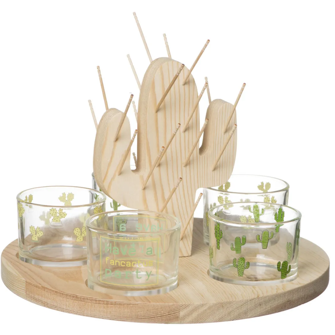 Le set pics apéro et coupelles cactus, un cadeau original à offrir pour se faire inviter. Pratique pour piquer les mini-brochettes, le cactus s’habille des plus belles couleurs, au gré de vos envies. Guacamole, olives, tacos, on se croirait presque au Mexique. Il ne manque plus que le sombrero !