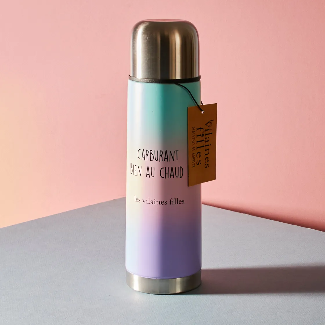 Cette bouteille de transport bouillante contient votre dose de carburant pour la journée. Dès qu’il s’agit d’inventer des objets utiles et décalés les Vilaines Filles ne sont jamais en panne d’idées ! Pour toutes les accros à la théine ou au café, ce joli thermos aux couleurs pep’s en dégradé vous assurera ne jamais avoir les batteries à plat.