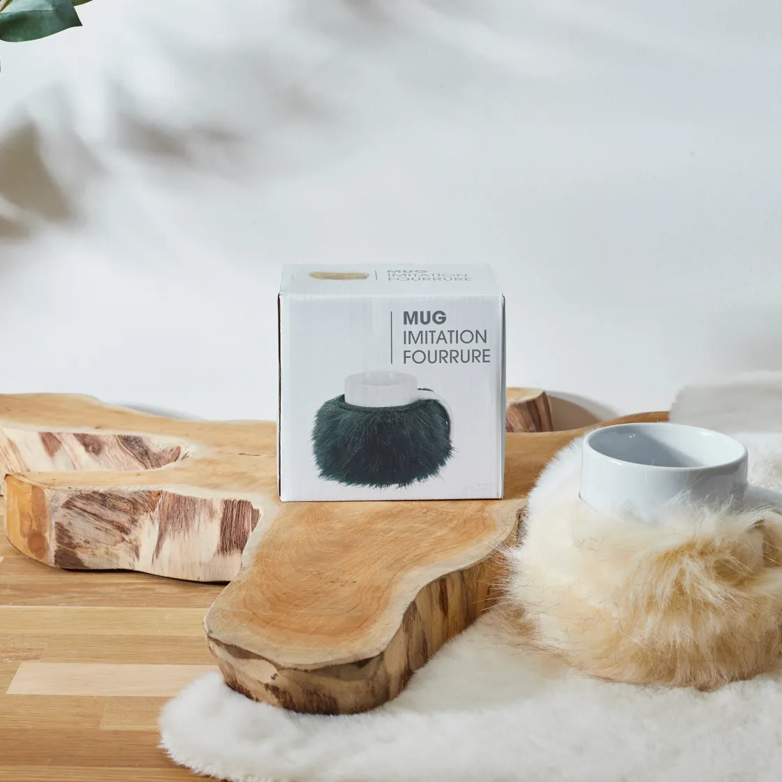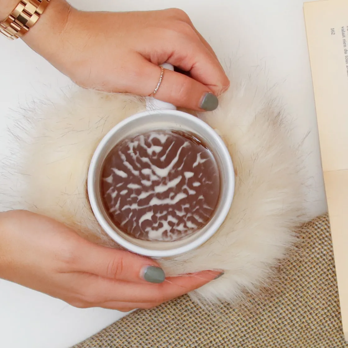 - Fausse fourrure qui s’enroule autour du mug