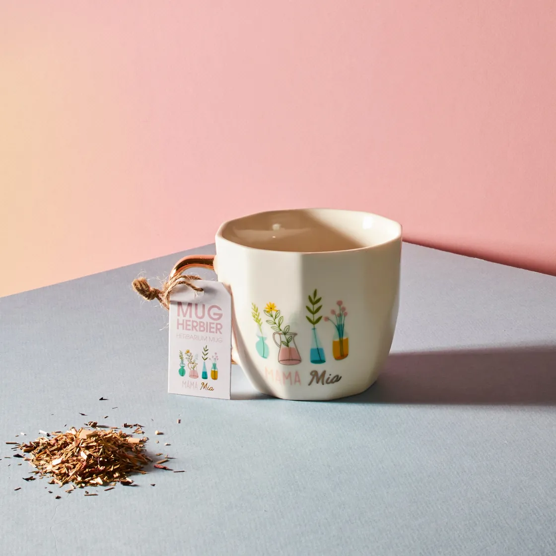 Si le passe-temps de maman, c’est de s’occuper de ses plantes, elle va apprécier ce mug herbier Mama Mia. Un joli cadeau utile et pratique à offrir pour son anniversaire, sa fête ou juste pour lui dire que vous l’aimez. L’occasion aussi de renouveler ses mugs et ses tasses car en réalité, il était temps !