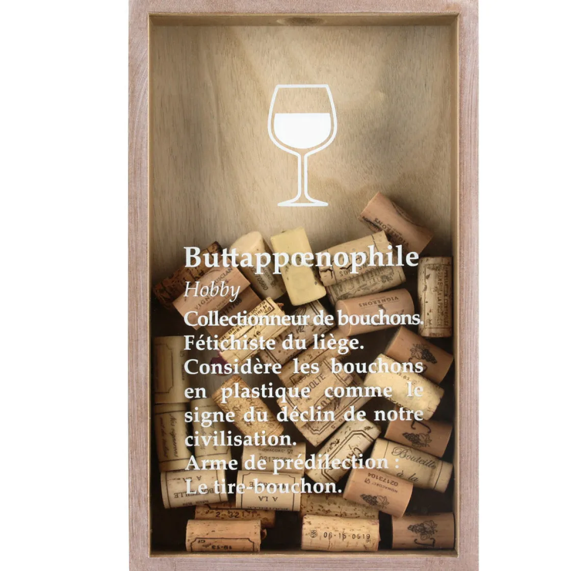 Vous avez la manie de conserver tous les bouchons de bouteille ? Peut être que vous êtes buttapœnophile sans le savoir ! Voici un cadre spécialement conçu à cet effet, à remplir avec vos plus beaux bouchons.