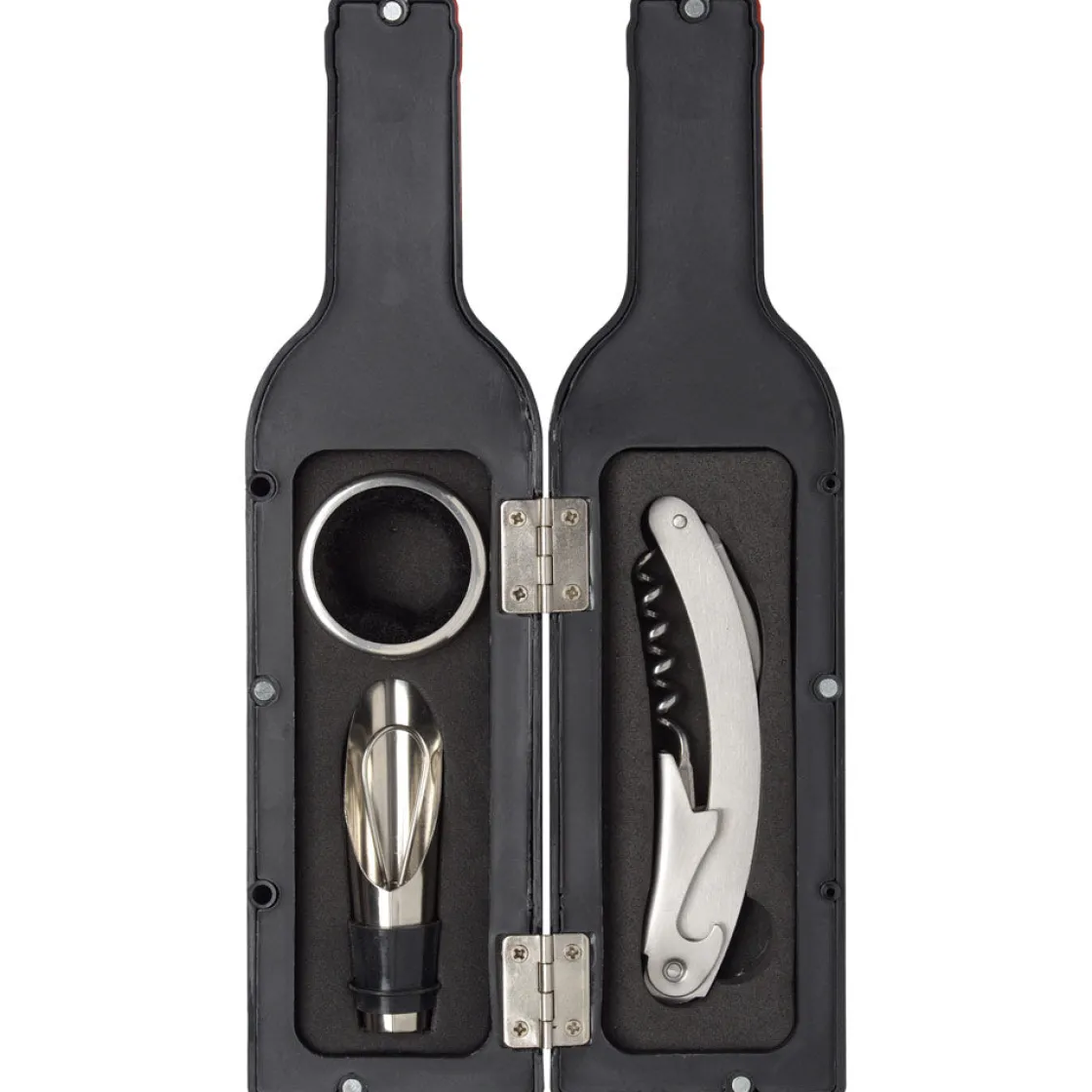 Avis aux amateurs de bonnes bouteilles ! Un kit d’accessoires à vin en forme de bouteille, il fallait y penser ! Cette petite bouteille contient 3 accessoires indispensables pour ouvrir et servir le vin dans les meilleures conditions. Original et design, cet accessoire est la bonne idée cadeau pour les amateurs de vin ! Décoratif, pratique et très peu encombrant, il peut facilement se ranger à l’intérieur d’un placard ou être laissé sorti en évidence sur une étagère et fera forcément plaisir.